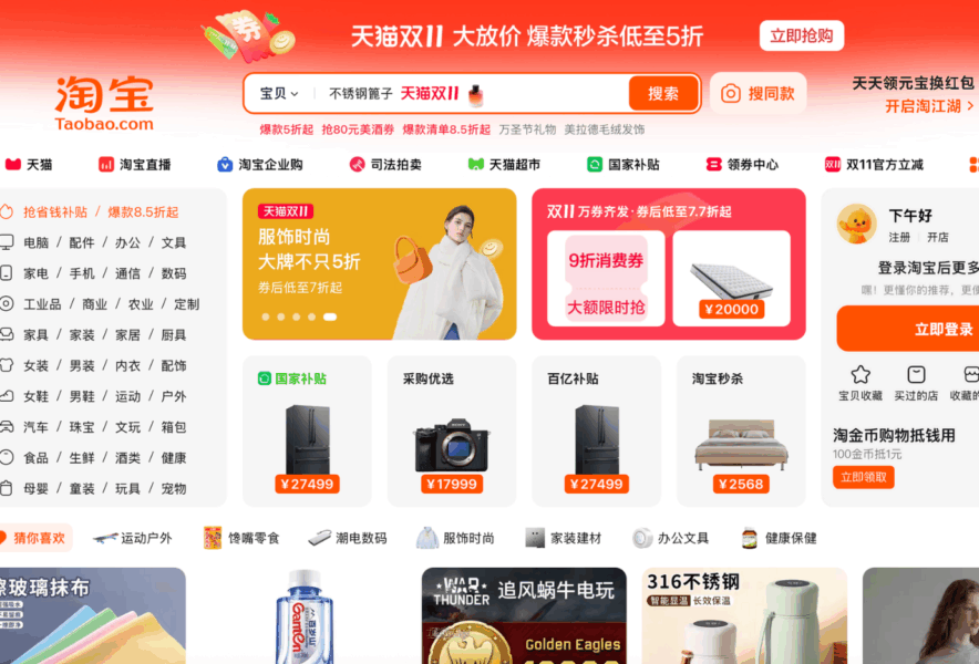 中国では毎年11月11日に、巨大なネット通販セール「双十一」が開催される。このイベントは2009年、アリババグループが運営するオンラインショップ「淘宝商城」(2012年に「Tmall(天猫)」へ改称)によって開始され、初回の一日売上高は約5,000万元に達した。その後、年を追うごとに規模は拡大し、2018年には2,135億元を突破している。